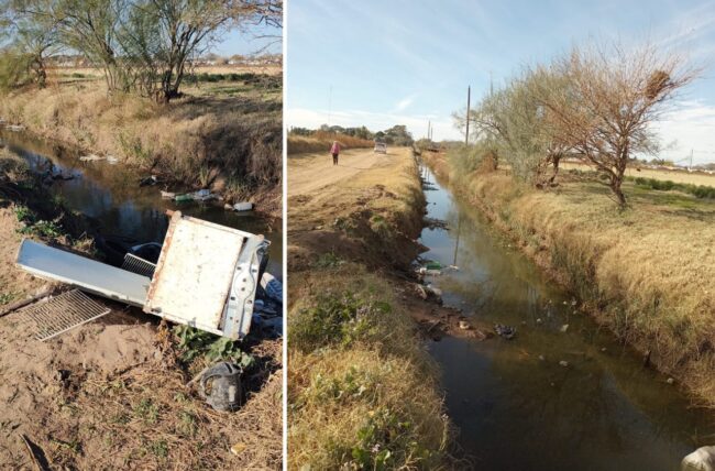 El municipio realizó tareas de limpieza en el canal de Blandengues: se sacaron bolsas, botellas y hasta una heladera