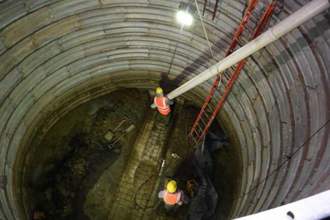 Fuerte avance en la obra del colector cloacal: se logró reparar el caño a 7 metros de profundidad