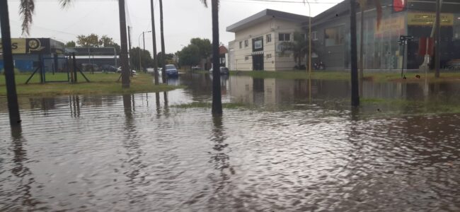 La intensidad de la lluvia colapsó algunos desagües urbanos y varias calles se inundaron