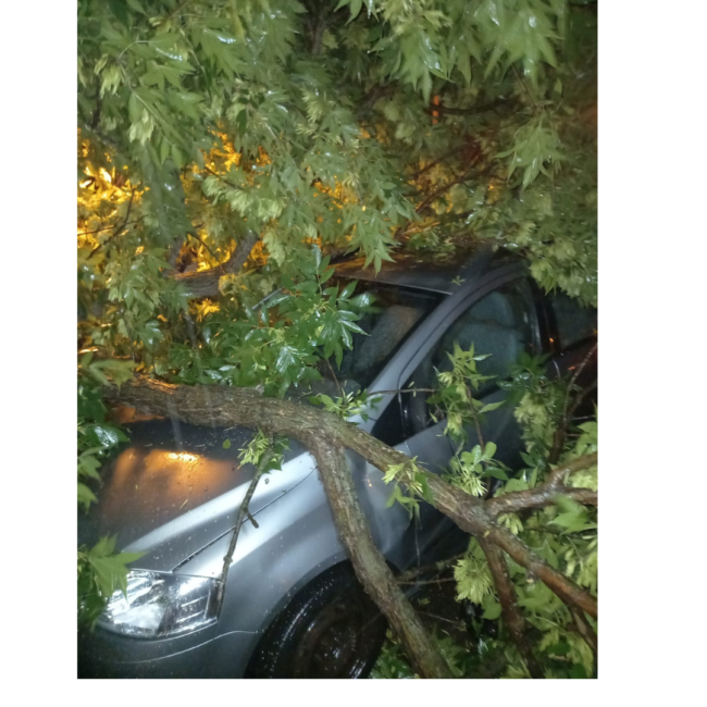 Bomberos Voluntarios y Defensa Civil trabajan por voladura de techos y árboles caídos en distintos sectores de la ciudad por el temporal