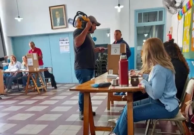 Mones Cazón: una persona fue a votar con motosierra al hombro y generó todo tipo de reacciones