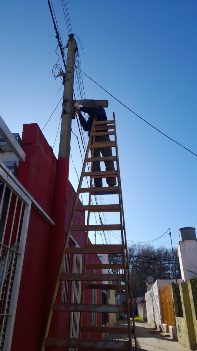 Hacen el recambio de luces en el barrio Los Robles