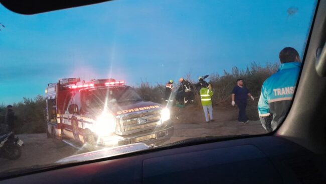 Se cayó un auto en un canal pluvial de la calle Paul Harris y los Bomberos rescataron al conductor