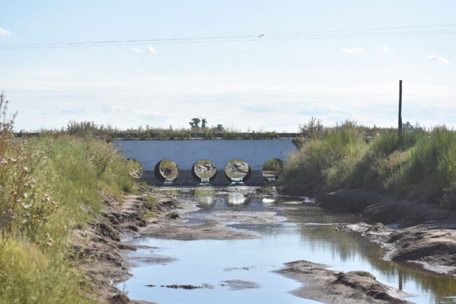 Efecto de la sequía: apenas un hilo de agua pasa por el entubado de la ruta 33 y entra a Cuero de Zorro