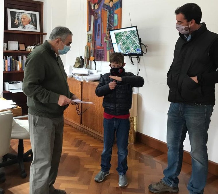 El Intendente y el niño Tomás Magnasco visitaron la zona donde se construye un puente