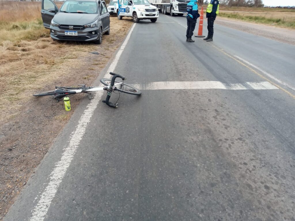 Una ciclista fue atropellada en la ruta y sufrió una fractura en uno de sus brazos