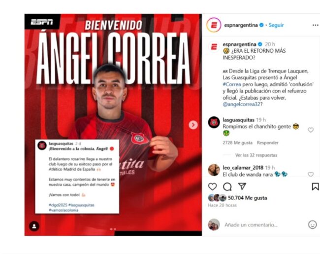 El canal ESPN publicó sobre el mercado de pases de la Liga Trenquelauquense ¿qué pasó?