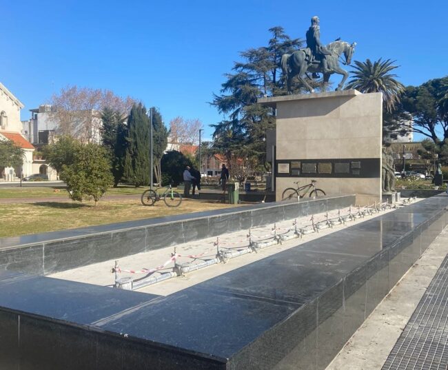 El Municipio realiza trabajos de limpieza y mantenimiento en la fuente y el monumento de la Plaza San Martín