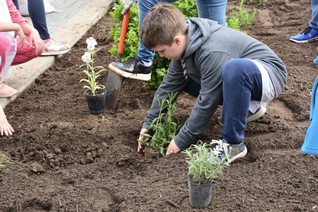 Alumnos de la Escuela 2 de Trenque Lauquen sembraron flores en la Plaza San Martín