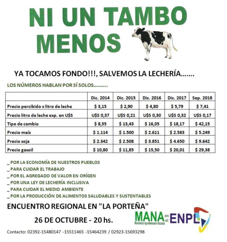 MANA convoca a La Porteña, para salvar la lechería