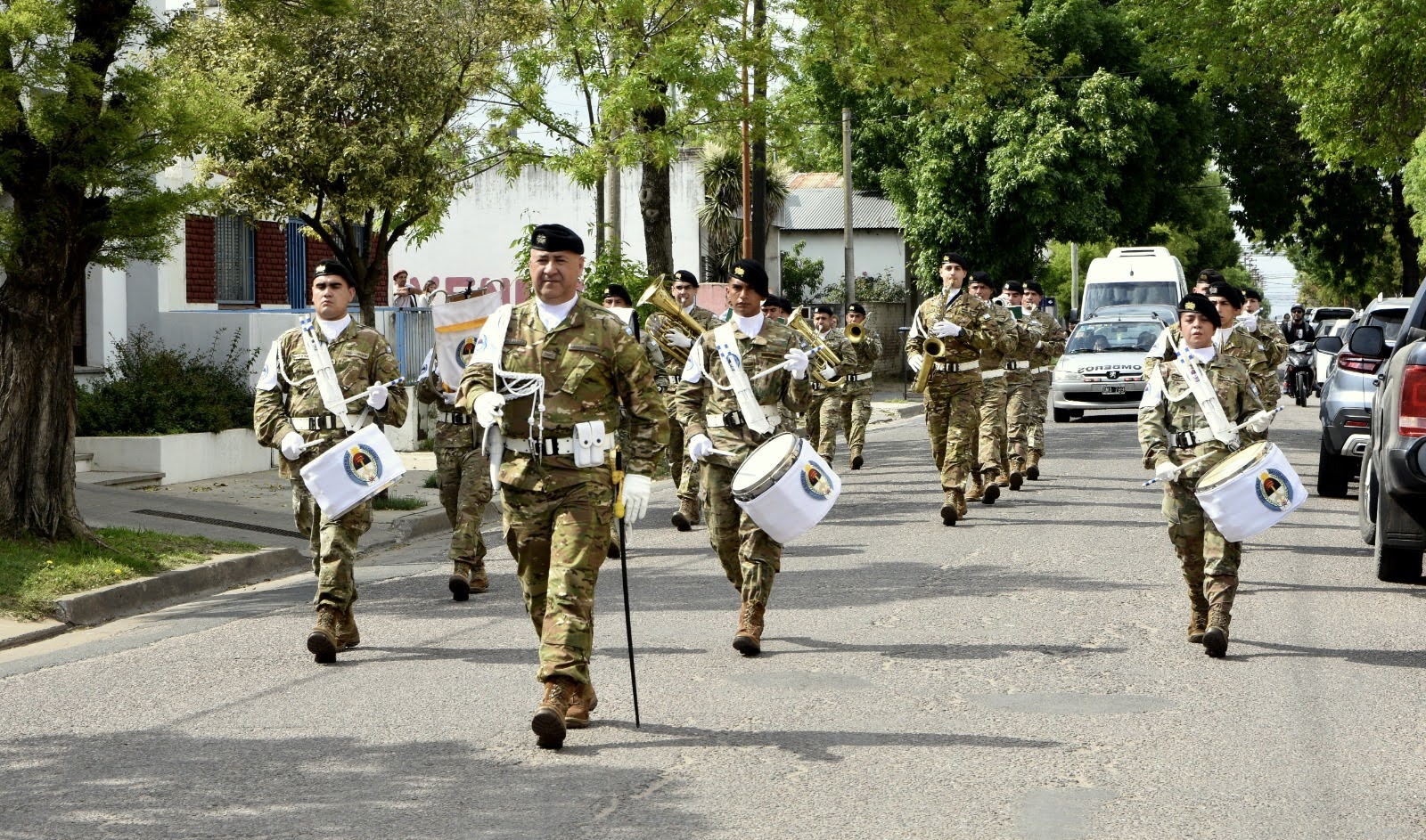 La Banda Militar “Cura Malal” del Regimiento con asiento en Pigüé, recorrió las calles de 30 de Agosto.