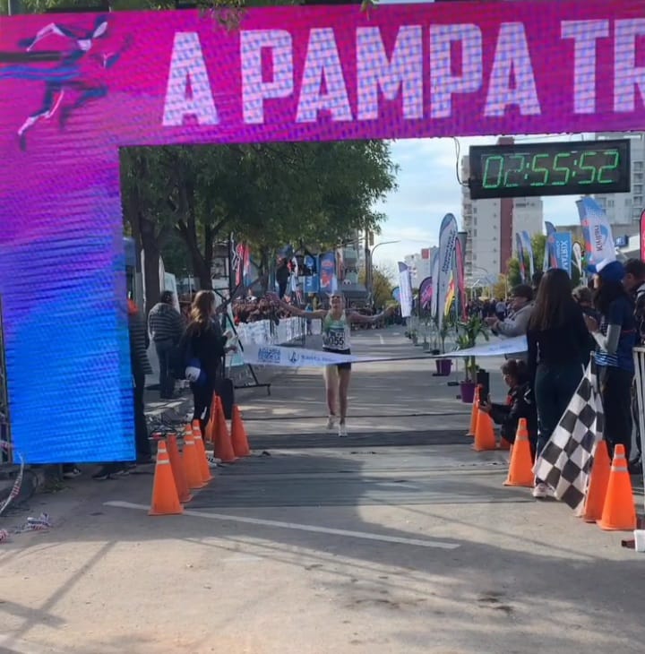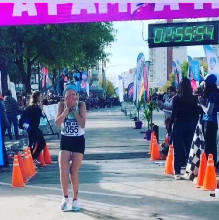 “Cuando pasé la primera vuelta me sentí muy bien, no sentí el muro del km 35 que sí lo había sentido en la primera experiencia del año 2018, en ese momento sentís que el cuerpo ya no te aguanta más. Los primeros 21 km lo hice con un compañero, Cristian, de Trenque Lauquen ya habíamos corrido juntos los 30 en Buenos Aires, pero la segunda vuelta me sentí muy sola, muy poca gente corre los 42, era un desierto, entonces me tenía que concentrar. Uno de una moto me gritó que la primera la tenía a 250 metros pero no me quería salir de ritmo porque se paga muy caro en una distancia tan larga, esperaba que ella bajara el ritmo pero no lo hizo. Me contó al final que giró la cabeza y me vio y entonces aceleró”.