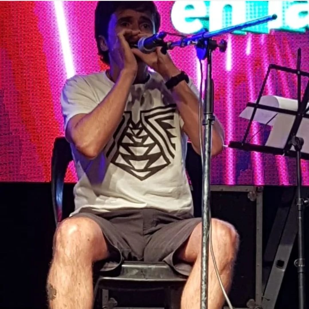 “En un momento había una banda en el barrio y yo iba a los ensayos y había una armónica dando vueltas y empecé a tocar, y fui a ver unos grupos locales que había una banda de rock blues y tenía un armonicista que nunca había escuchado agarró el micrófono y tenia un sonido muy particular, eso me impactó y empecé a incursionar”.