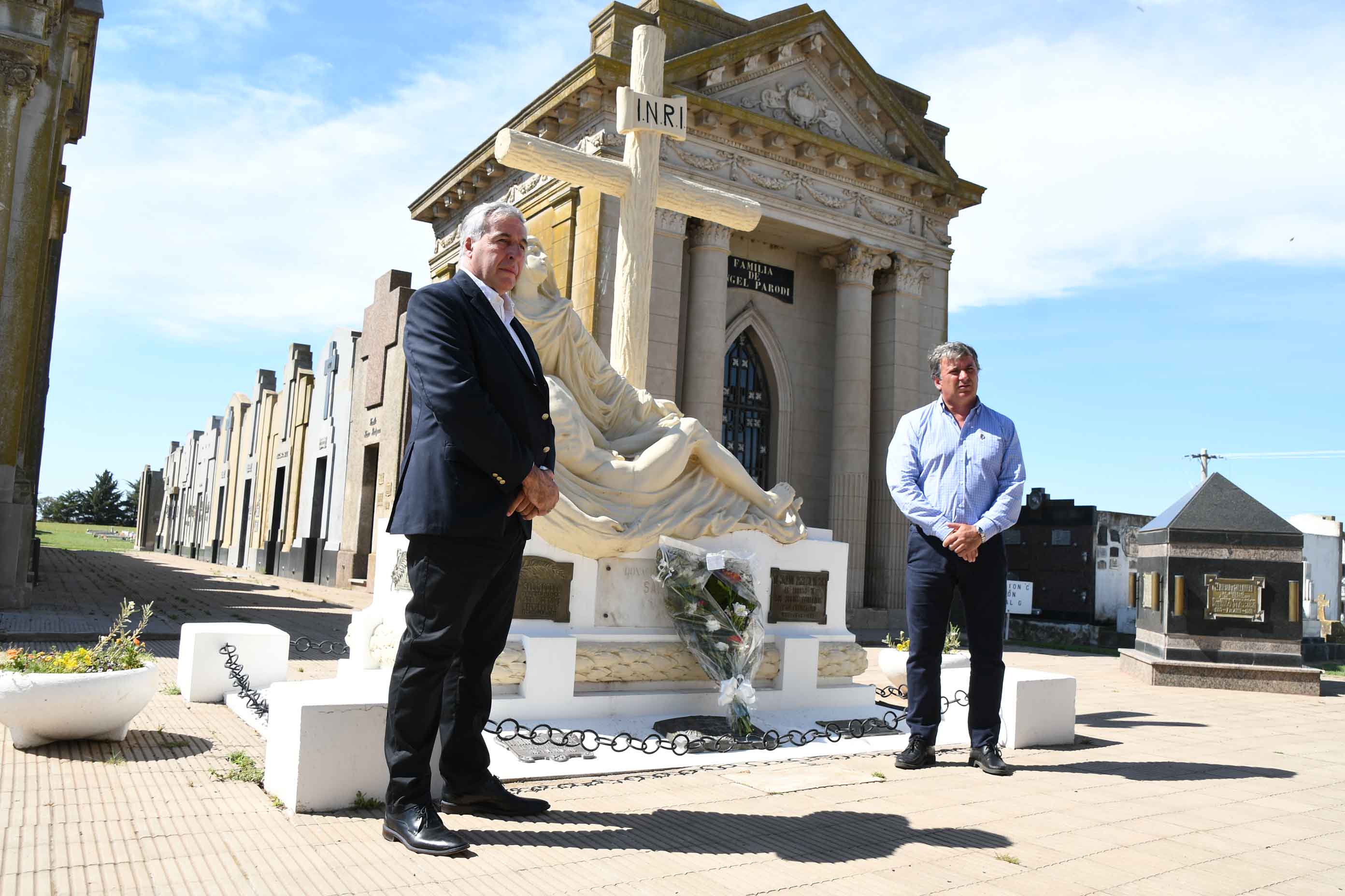 Las autoridades municipales y representantes de instituciones intermedias de la localidad se dieron cita a las 10 de la mañana en el Cementerio local donde se colocaría una ofrenda floral al pie del La Piedad, escultura que año tras año recibe a quienes homenajean a los precursores de la tan ansiada autonomía que aquel 13 de noviembre de 1961 vieran concretado ese anhelo que demandó años de trabajo, gestiones y esfuerzos.